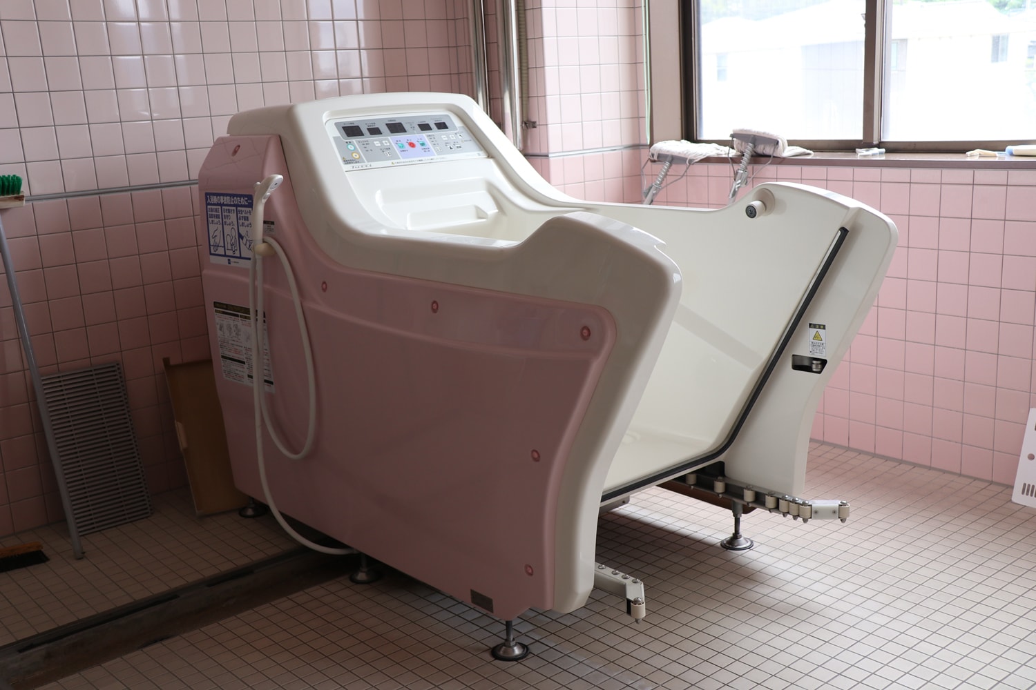 座ったままでの入浴が可能です。寝たきりの方もご入浴できるよう、介護士と一緒に介助いたします。